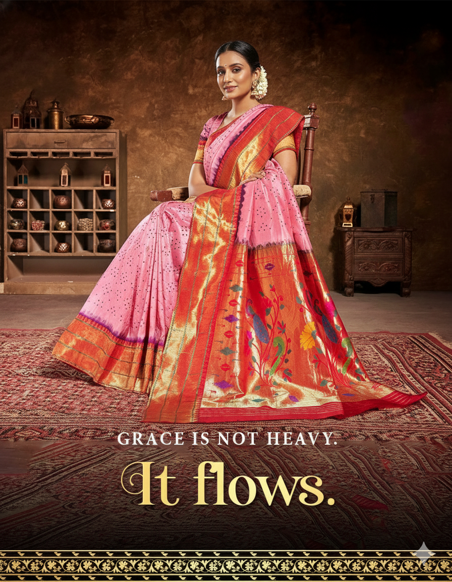 A Paithani isn’t just a saree — it’s Maharashtra’s royal heritage woven in silk.