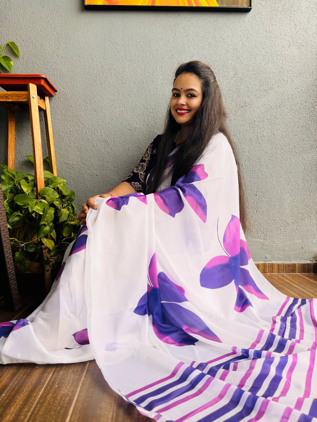 Not just a saree,it’s a mood ~ calm,confident, and floral. 💜
